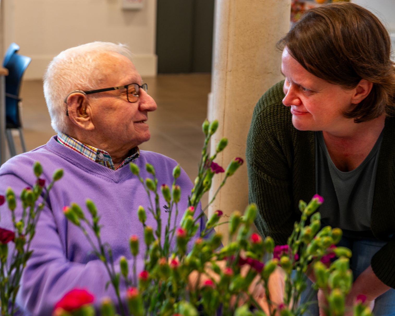 Onze bewoners staan centraal, maar we erkennen ook het belang van de familie en naasten die deel uitmaken van hun leven. De eigenheid van onze bewoners wordt mede gevormd door hun familie, en vice versa. We betrekken de familie actief bij het zorgproces, luisteren naar hun verhalen en samen zorgen we voor een warme omkadering. Via open communicatie en wederzijds respect bouwen we aan zorg die is gebaseerd op vertrouwen en samenwerking.